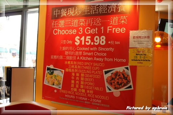▼每日一字:原來鐵板餐是用 sizzling…嘶嘶嘶的狀聲詞~另外一個有趣的是三杯就直翻成 three cup 了,頗台的 😛