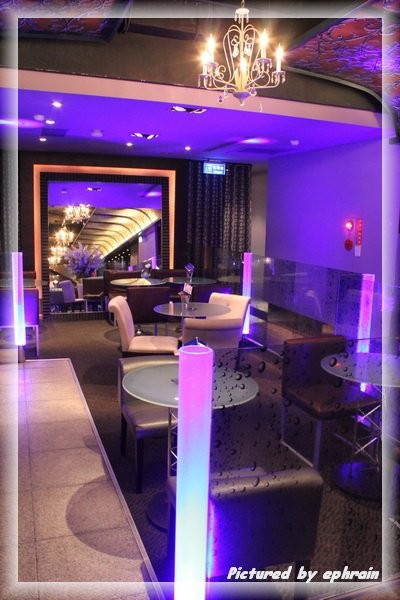 ▼用餐區後方的咖啡座,後方那個斜放的鏡子照出了天花板,很有延伸感~