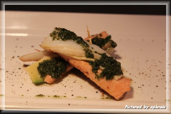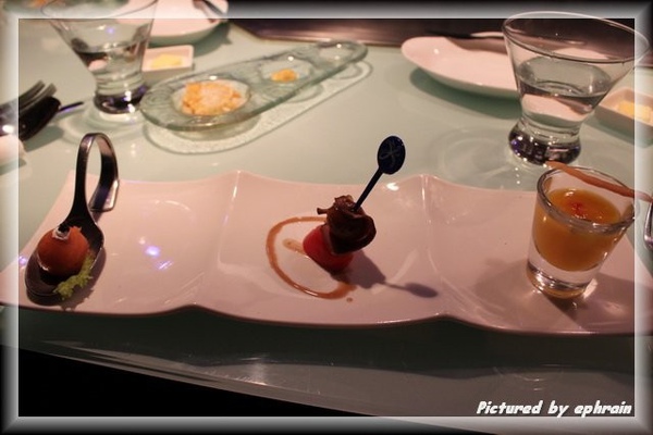 ▼一樣的開胃菜:芒果冷湯、鮮蝦水果盅、魚子醬鮭魚球~比較喜歡芒果冷湯~