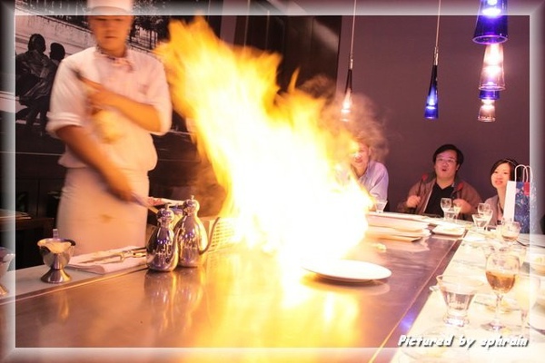 上了開胃菜麵包等等之後,主廚就開始料理主菜囉~