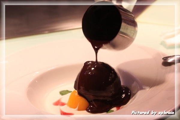 跟想像中熱巧克力直接澆在冰淇淋上面不太一樣,味道似乎就沒有想像中那麼的好~